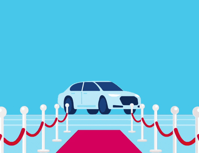 with a unique visual scene for each product: a car on the red carpet,